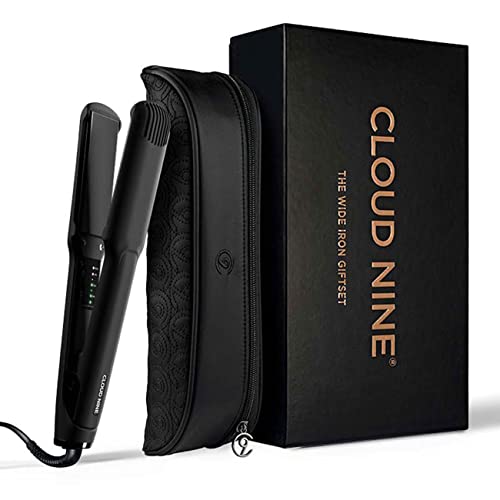 CLOUD NINE The Wide Iron Hair Straightener Gift Set | Ceramic Floating Plates Cushion Spring Flex Technology | Variable Temperature Control 100°C - 200°C | Professional Design for Range of Hair Types…