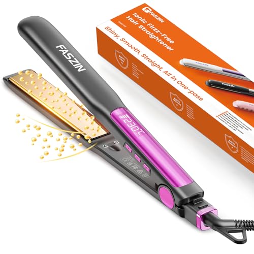 Faszin Hair Straighteners, Ionic Titanium Plate for Smooth Shiny Results, 20S Fast Heat Up Flat Iron, Clear LCD Display, 2 in 1 Straightener and Curler Styling Tool for Straighten Hair (Grey)