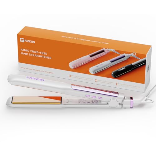 Faszin Ionic Hair Straighteners, 20S Fast Heat Up Flat Iron, Titanium Plate for Smooth Shiny Results, Clear LCD Display, 2 in 1 Hair Straightener (White)