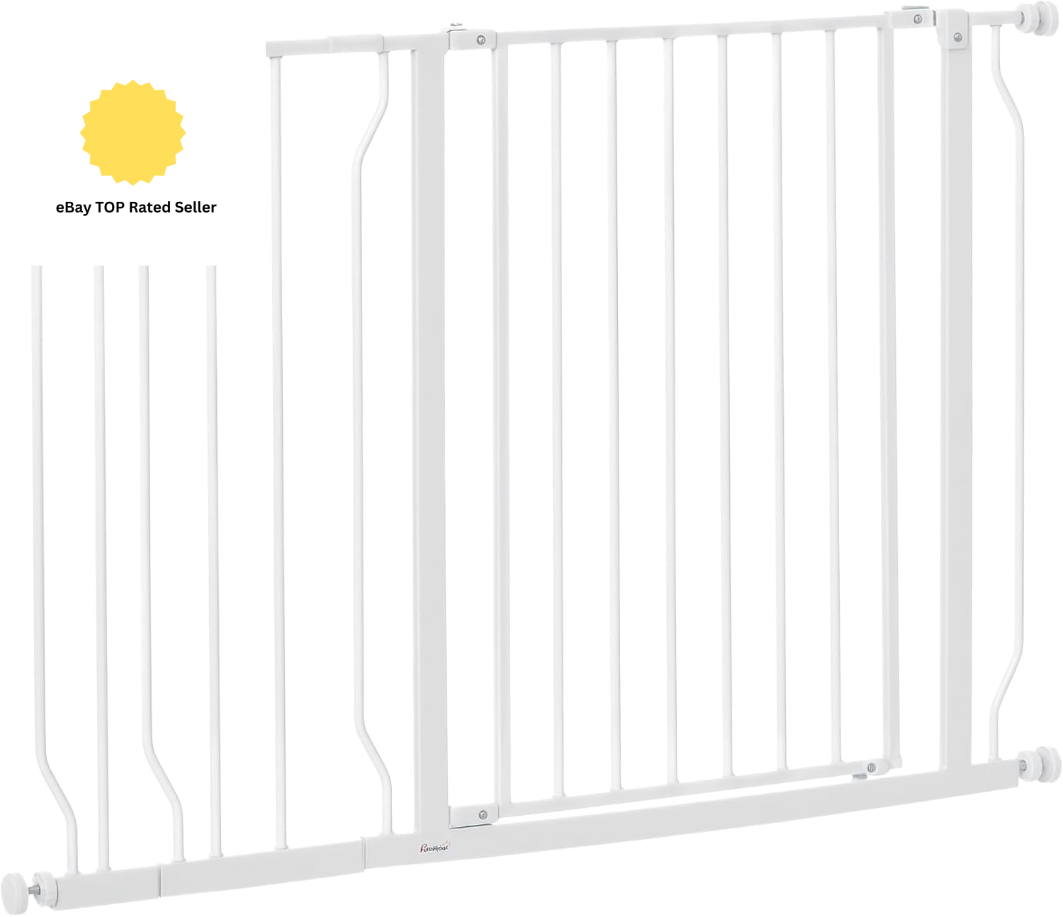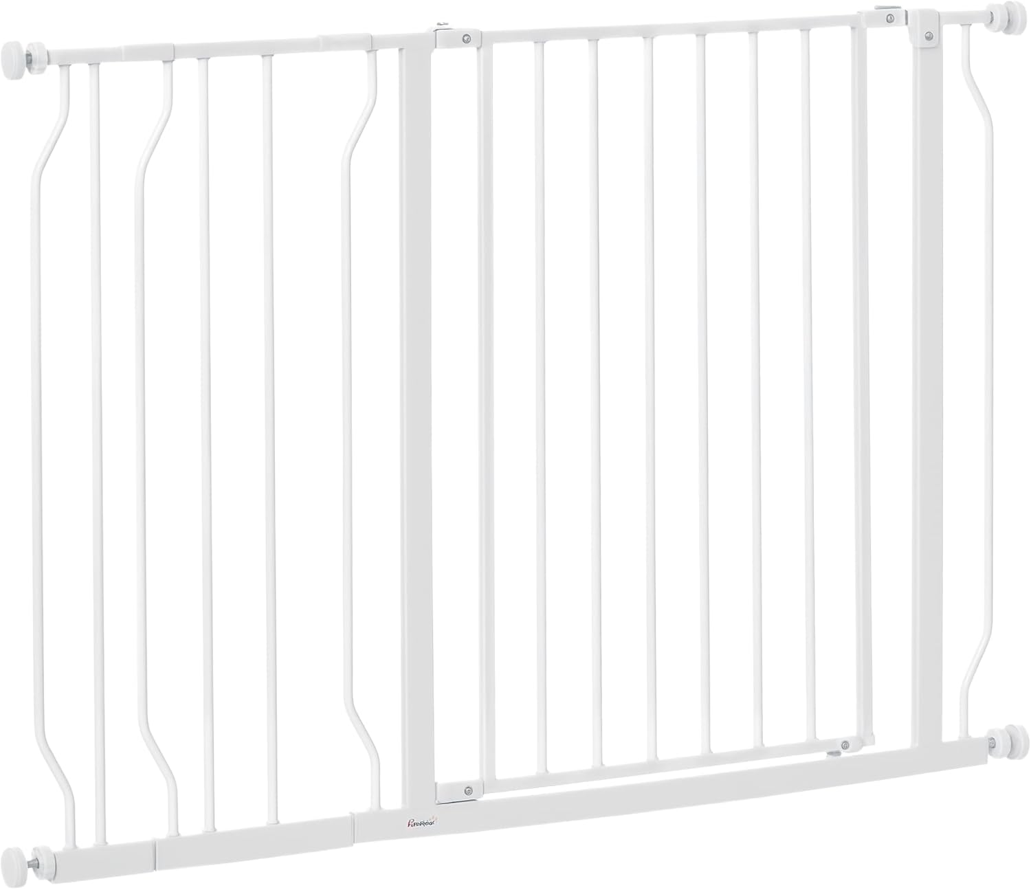 (White) PawHut Dog Gate Wide Stair Gate w/ Door Pressure Fit, 75-85W cm