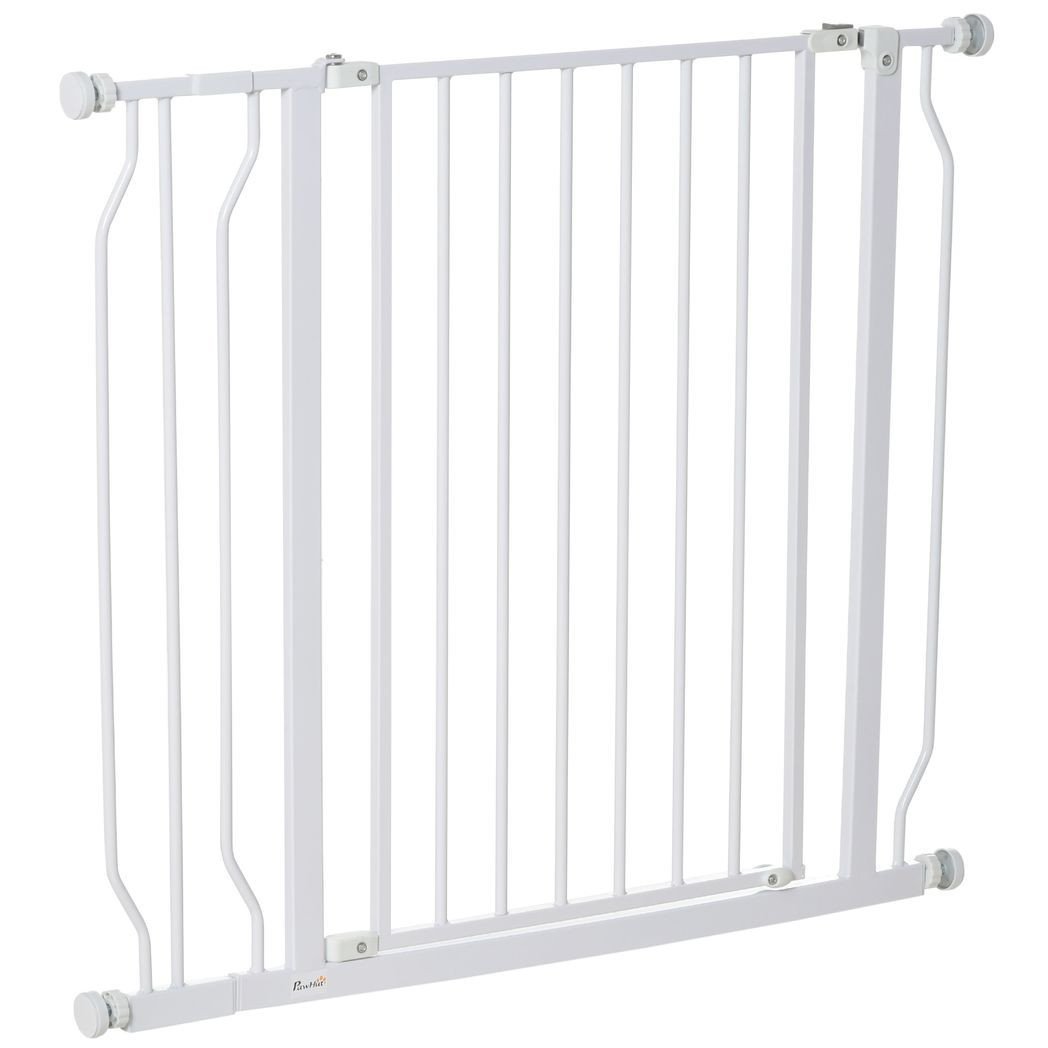 PawHut Dog Gate Wide Stair Gate with Door Pressure Fit, 75-95W cm, White