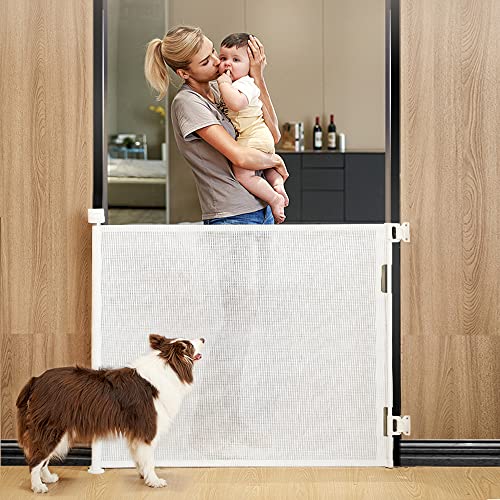 derimkcoa Retractable Stair Gate for Baby,Mesh Baby Gate or Mesh Dog Gate,86cm Tall,Extends up to 140cm Wide,Child Safety Gate for Doorways, Stairs, Hallways, Indoor/Outdoor, White