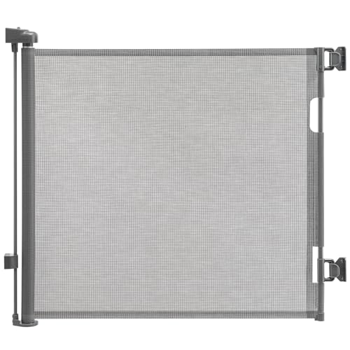 PawHut Retractable Stair Gate for Dogs, Extra Wide Dog Gate Extends Up to 140 cm Wide, 86.5 cm Tall, for Doorways, Stairways, Hallways, Indoor and Outdoor, Grey