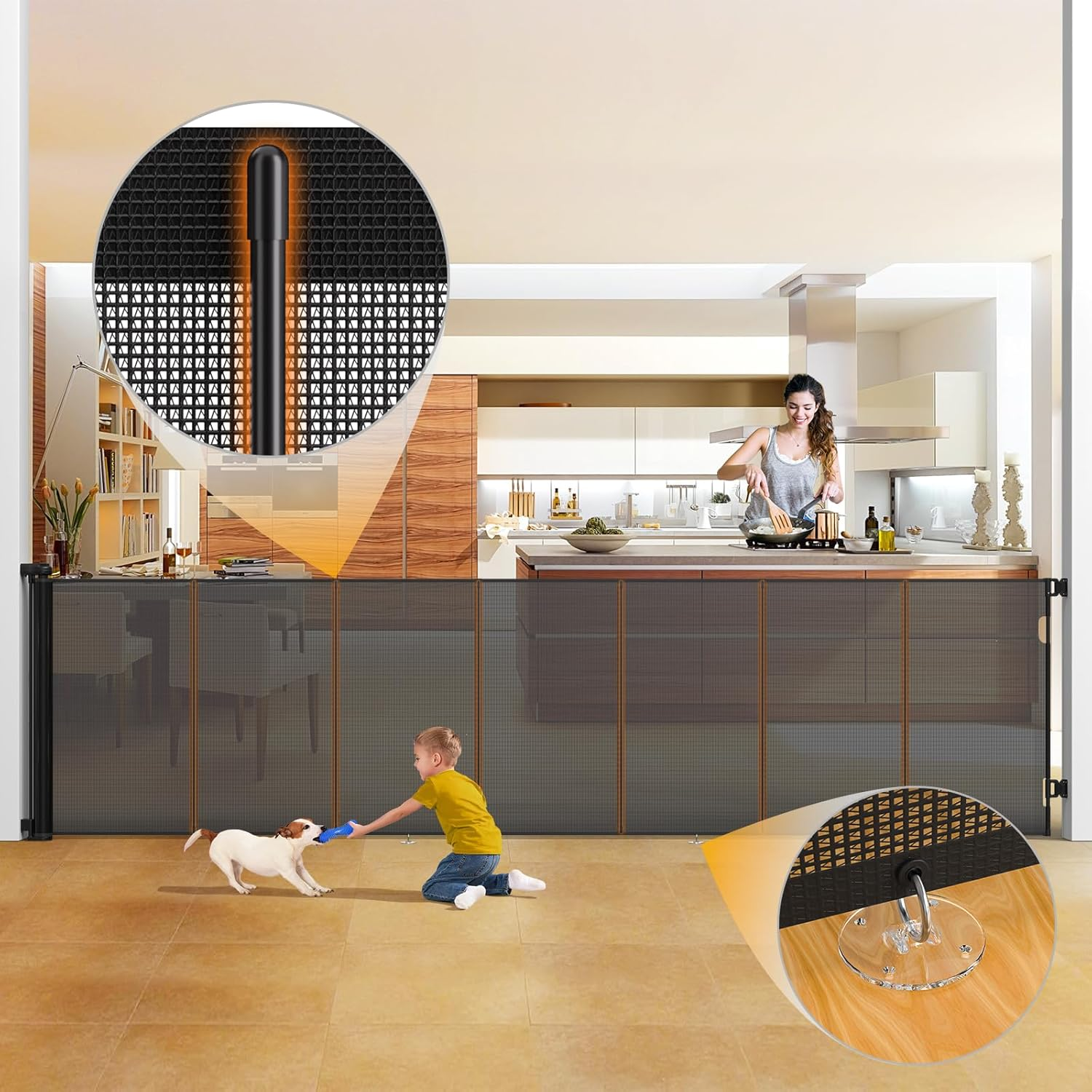derimkcoa Retractable Stair Gate for Baby,Mesh Baby Gate or Mesh Dog Gate,86cm Tall,Extends up to 140cm Wide,Child Safety Gate for Doorways, Stairs, Hallways, Indoor/Outdoor, Black