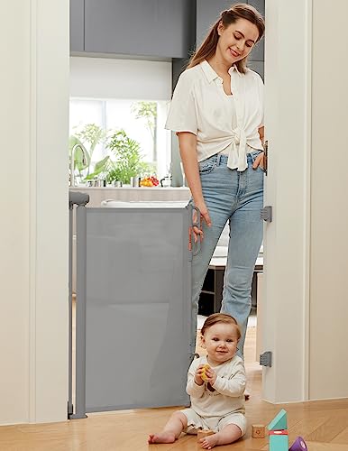 derimkcoa Retractable Stair Gate for Baby,Mesh Baby Gate or Mesh Dog Gate,86cm Tall,Extends up to 140cm Wide,Child Safety Gate for Doorways, Stairs, Hallways, Indoor/Outdoor, Grey