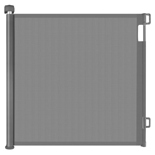Plurimo Retractable Stair Gate for Baby & Dog Gate | Extends up to 140cm Wide & 86.5cm Tall | Extra Wide Mesh | One Handed Operation with Safety Lock | Pet & Dog gates Indoor/Doorways/Outdoor | Grey