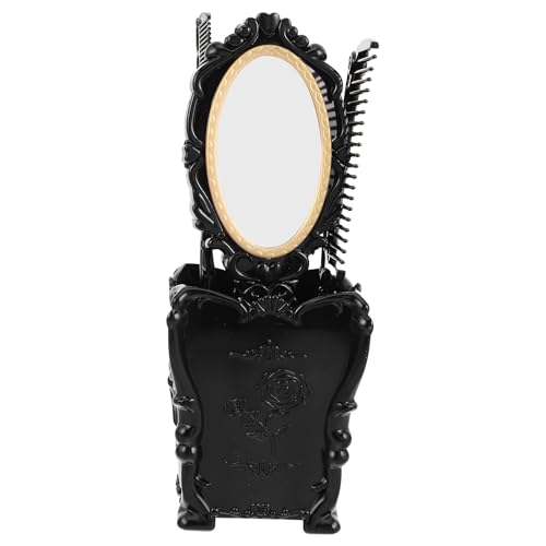 DIYEAH Vintage Hair Comb Set for Women with Wide Tooth Comb, Handheld Makeup Mirror and Brush Cleaner in Black PVC Storage Box for Vanity and Travel Use