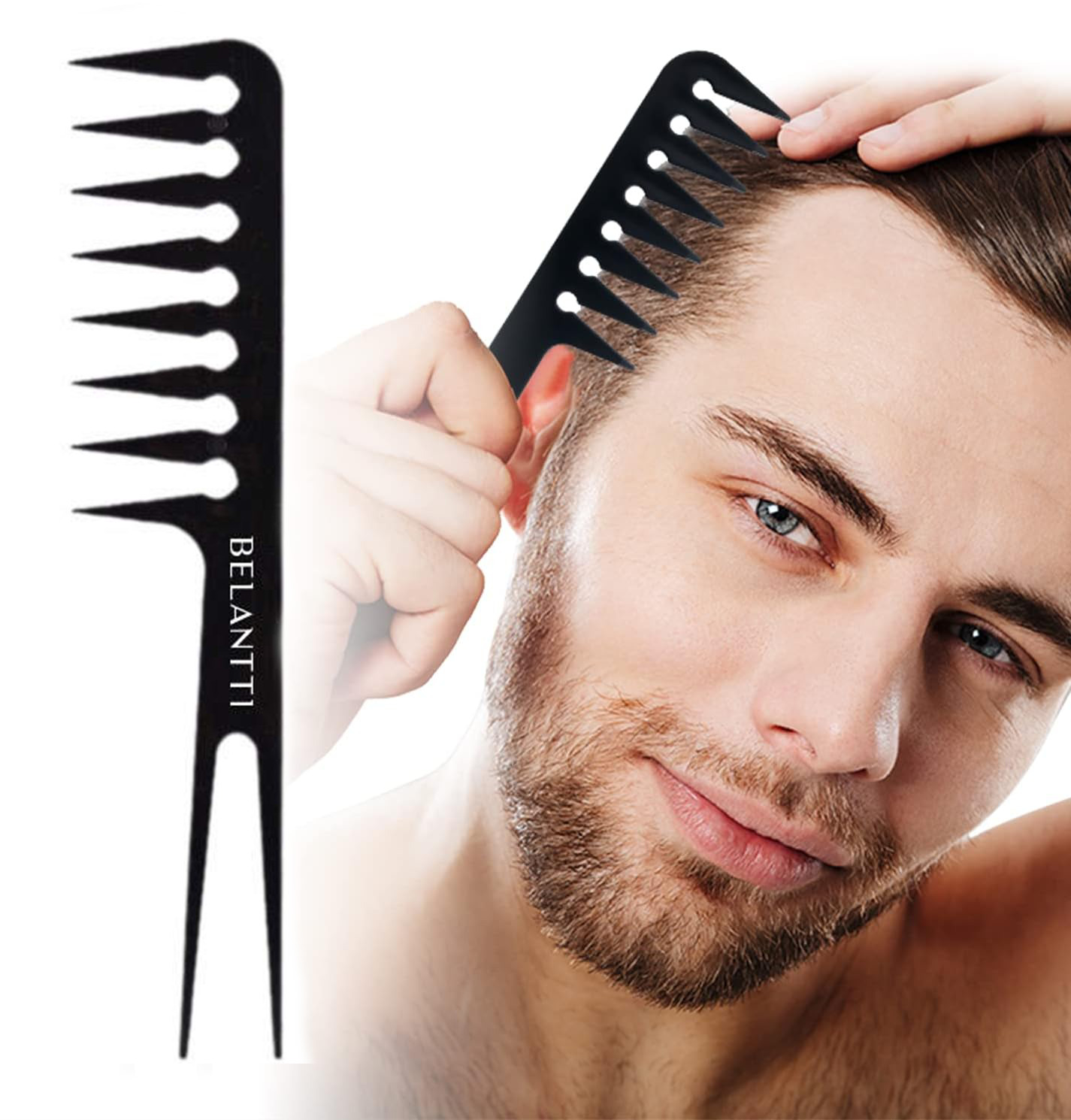 Wide-Tooth Hair Comb 2-in-1 for Men Head Texturising Texture Comb - Black
