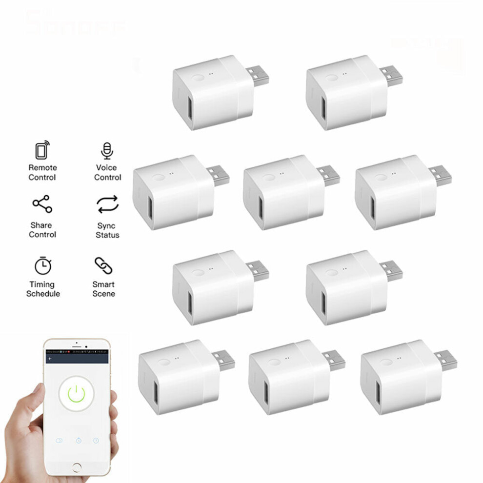 10Pcs Micro 5V Wireless USB Smart Adaptor WiFi Mini USB Power Adaptor APP Remote Control Voice Control For Smart Home Works with Alexa Google Home