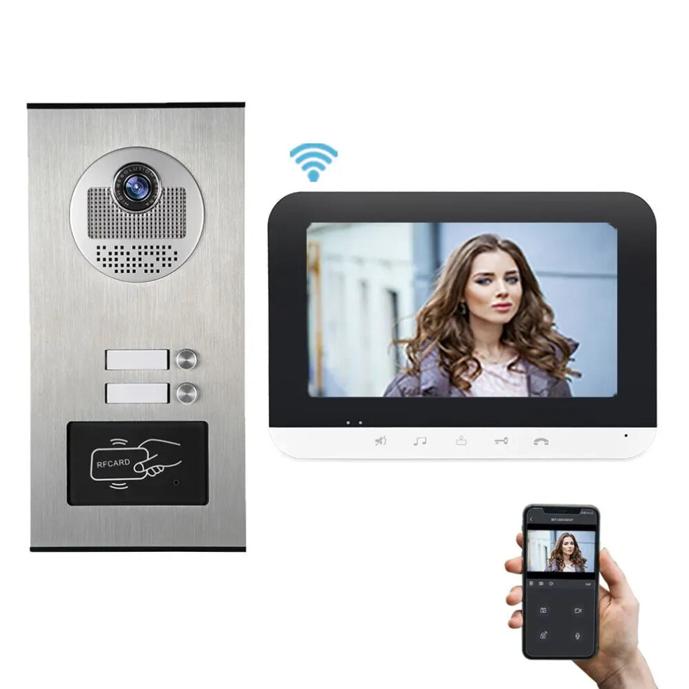 7-Inch WiFi Video Door Phone Intercom System with RFID, Night Vision, and IR Cut Camera for 2-Apartment Family Use