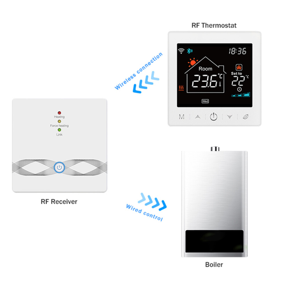 Smart WiFi Boiler Thermostat with Rotary Knob & RF Wireless Control