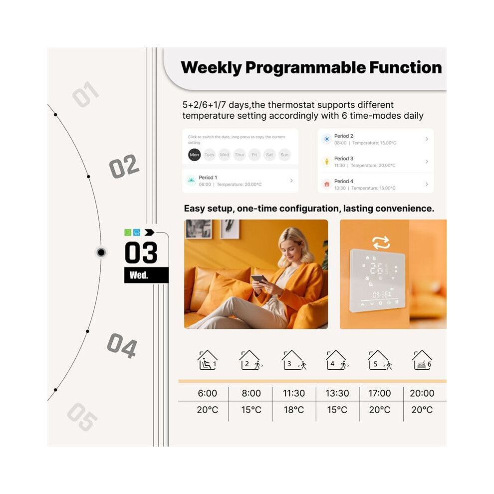 Smart 7-Day WiFi Boiler Thermostat, 95-240V, 6 Period Programming