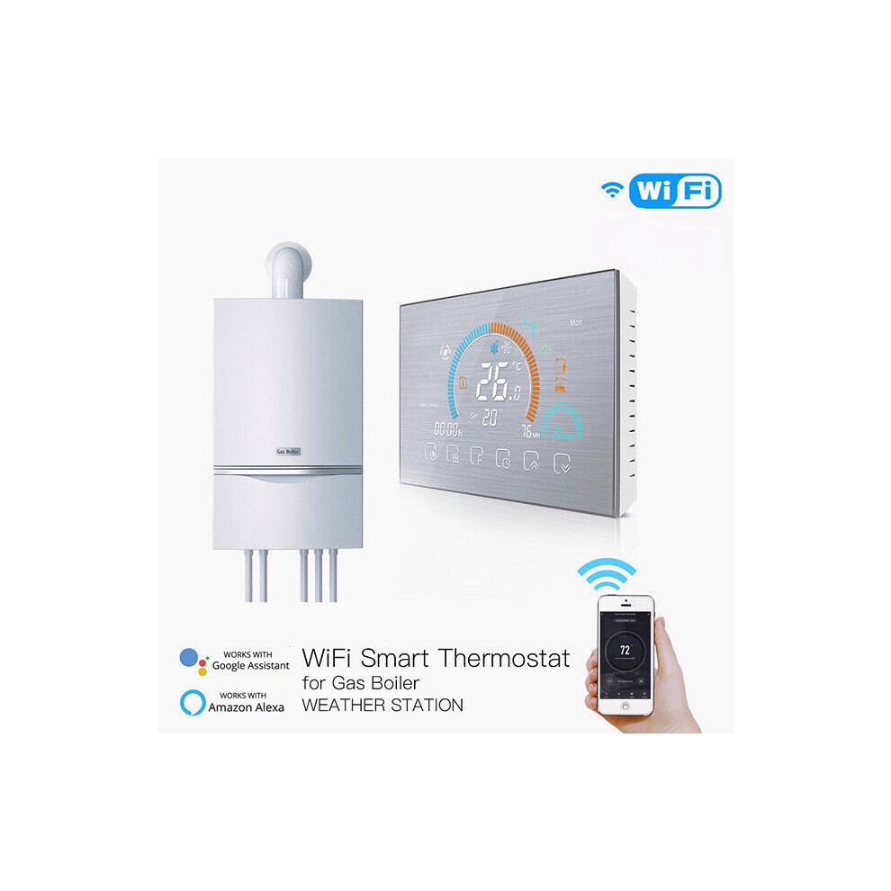 (Silver, Water-Gas Boiler) Wifi Smart Thermostat Temperature Controller Weekly Programmable Button Control/ Mobile App/ Voice Control Compatible With