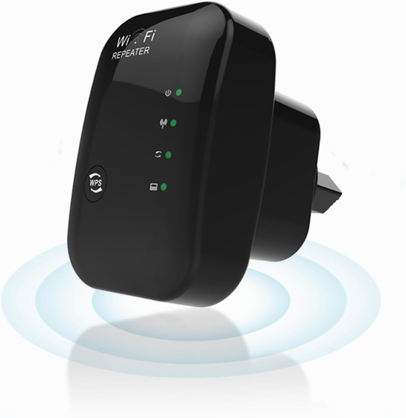 300Mbps WiFi Repeater WiFi Extender Booster Wireless Amplifier with UK Plug, Suitable for Most Hotels and Home Networks, Black