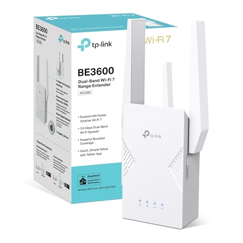 TP-Link RE225BE BE3600 WiFi Extender Booster,WiFi 7 Dual Band WiFi Booster with Ethernet Port,WiFi Extender with MLO/4K-QAM/Roaming,EasyMesh Internet Booster,APP control,Plug and Play