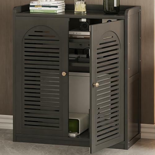 LIMENQIN WiFi Router Storage Cabinet, Bamboo WiFi Router Hidden Box, Home Media Storage Cabinet with Adjustable Shelves, Floor Standing Hidden Organizer for Radiator(Black,59x82x25cm)