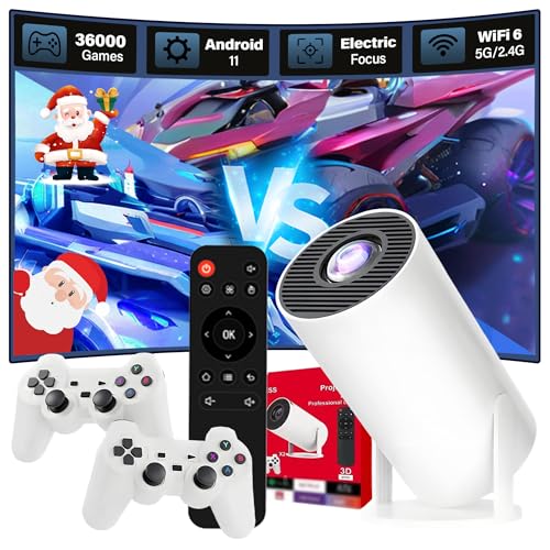 XIXIMENG P30 MAX Mini Projector 36000+ Games 14 Emulators,Game Projector with Controllers,Android 11,H713 Chip Portable Projectors with WiFi & Bluetooth,Auto Focus Keystone,180° Rotation (White Box)