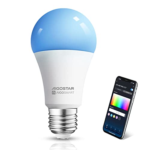 Aigostar Smart Bulb E27, Alexa Light Bulb, WiFi Smart Bulb 9W RGBCW LED Colour Changing Light Bulb Compatible with Amazon Alexa and Google Home,Sync to Music, Dimmable, No Hub Required