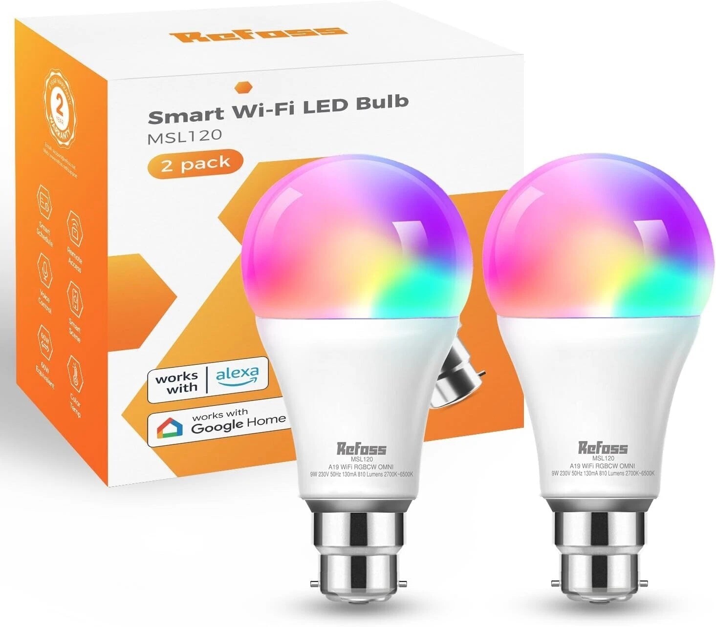 Refoss Smart Light Bulb Alexa b22 Bayonet WiFi Led Bulb 9W with Colour Changing Light, 810LM Dimmable (Warm/Cool) Smart Bulbs Works with Alexa(Echo and Echo Dot), Google Home - 2 Packs