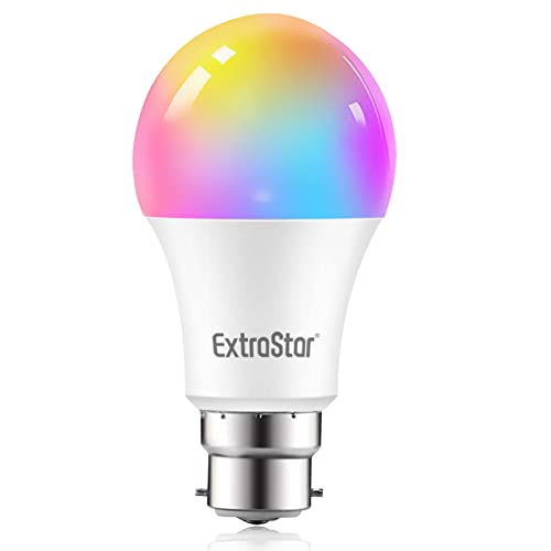 EXTRASTAR B22 WiFi Smart Bulb Alexa Light Bulbs, 10W 800LM Dimmable Colour Changing Light Bulb, A60 RGB WiFi LED Bulbs, No Hub Required, Remote Control Compatible with Alexa, Google Home (1 Pack)