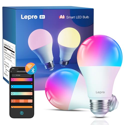 Lepro B1 AI Smart Bulb E27, Music Sync Bluetooth & WiFi Bulb, Voice Control Screw Light Bulbs, AI Lighting Design Assistant, RGBCCT Colour Changing Bulb, Work with Alexa & Google Assistant, 2 Packs