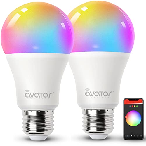 Avatar Controls WiFi Smart Bulb E27 Screw, Music Sync Alexa LED Light Bulbs Colour Changing Dimmable Works with Alexa/Google Home, 9W RGB+Warm+Cool White 900LM, No Hub Required(2 Pack)