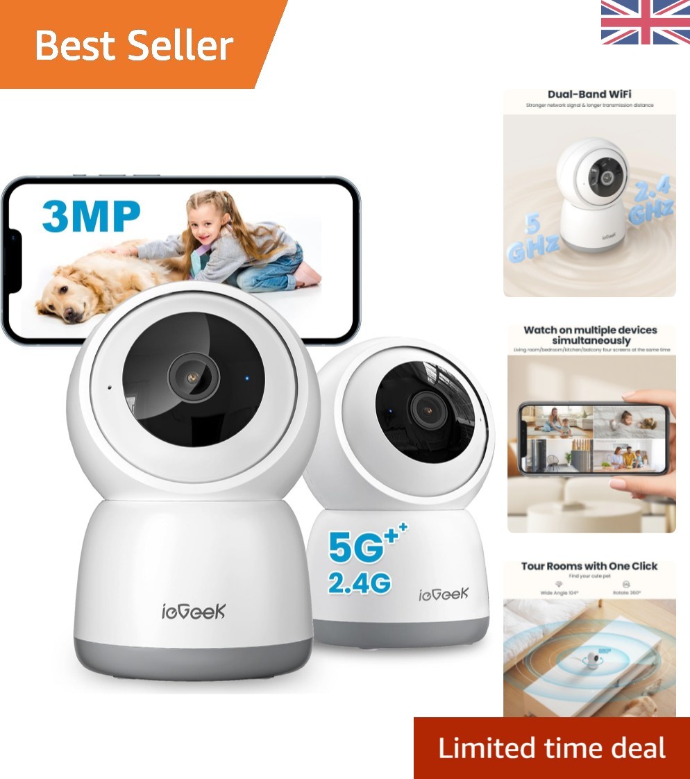 (UK Plug) Smart WiFi Camera Indoor Security Camera Dual Cameras 2K For