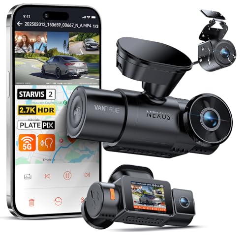 VANTRUE S1Pro Dash Cam Front Rear 2.7K+1080P HDR 5G WiFi GPS, STARVIS 2, Dual Dashcam for Car Dash Camera, Night Vision, Voice Control, Hidden Car Dash Camera 15s Buffered Parking Mode, Support 512GB