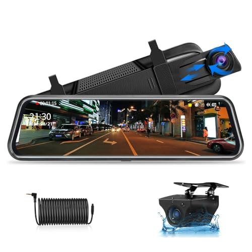 【2025 Upgraded】10" Mirror Dash Cam Front and Rear View Camera 1080P Full Touch Screen Night Vision Dual Car Camera Dash Cam Loop Recording Streaming Media DVR 170° Wide Angle with 10M Cable Jansite