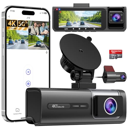 GKU 4K 3 Channel Dash Cam,5G WiFi DashCam,4K+1080P+1080P Dash Cam Front and Rear and Inside,Built-in GPS,170° Wide Angle DashCam,24H Parking Mode,64GB Card,3-Inch Screen,Max 512GB.