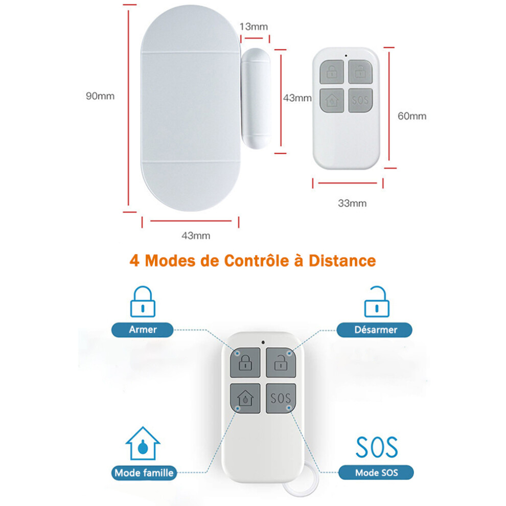 2pcs WiFi Door Window Sensor Alarm Remote Control Home Safety System