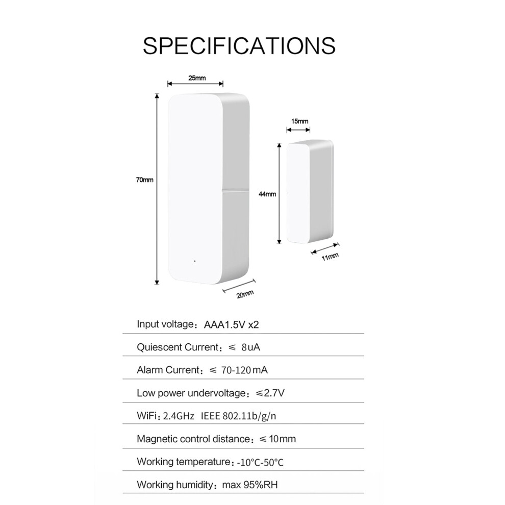 WiFi Door Window Sensor APP And Voice Control Smart Door Magnetic Alarm Detecto