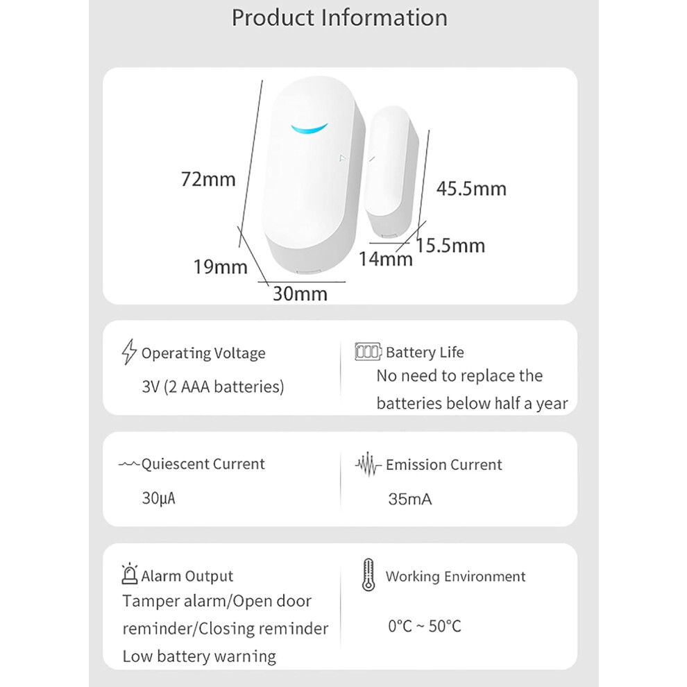 Smart WiFi Door Window Sensor Alarm Compatible with Alexa and Google Home APP Alarm Home Security Accessories