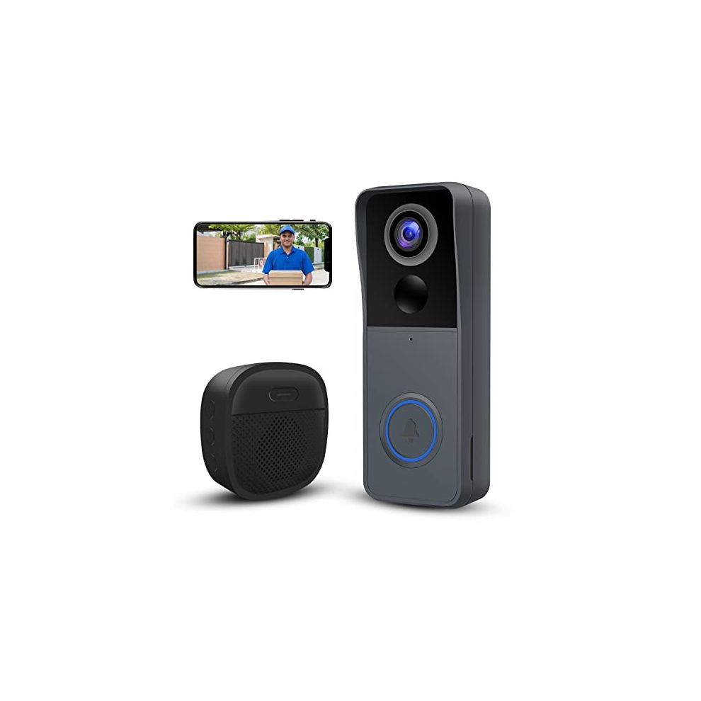 Wireless Video Doorbell Camera with Doorbell, 1080P Smart WiFi Doorbell Camera, Voice Changer, PIR Motion Detection