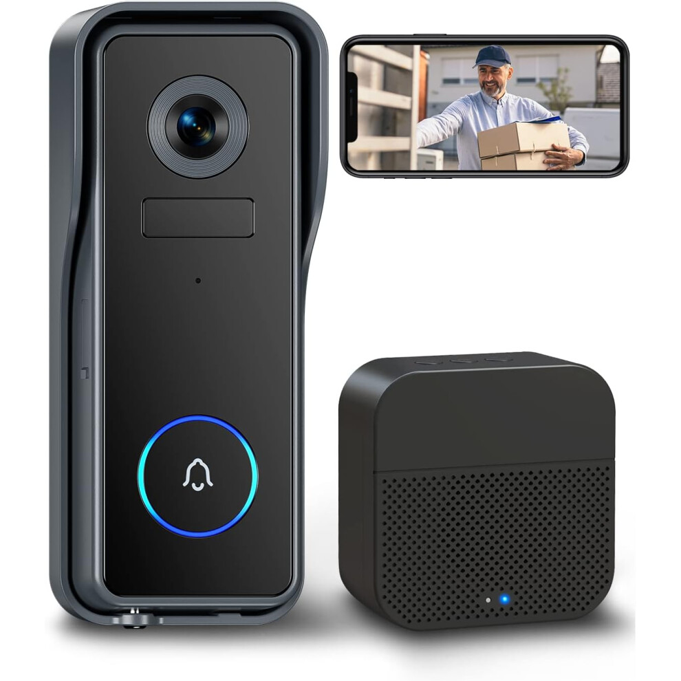 Wireless WiFi Video Doorbell Camera with Chime, 2K HD Smart Video Doorbell with Camera Battery Operated