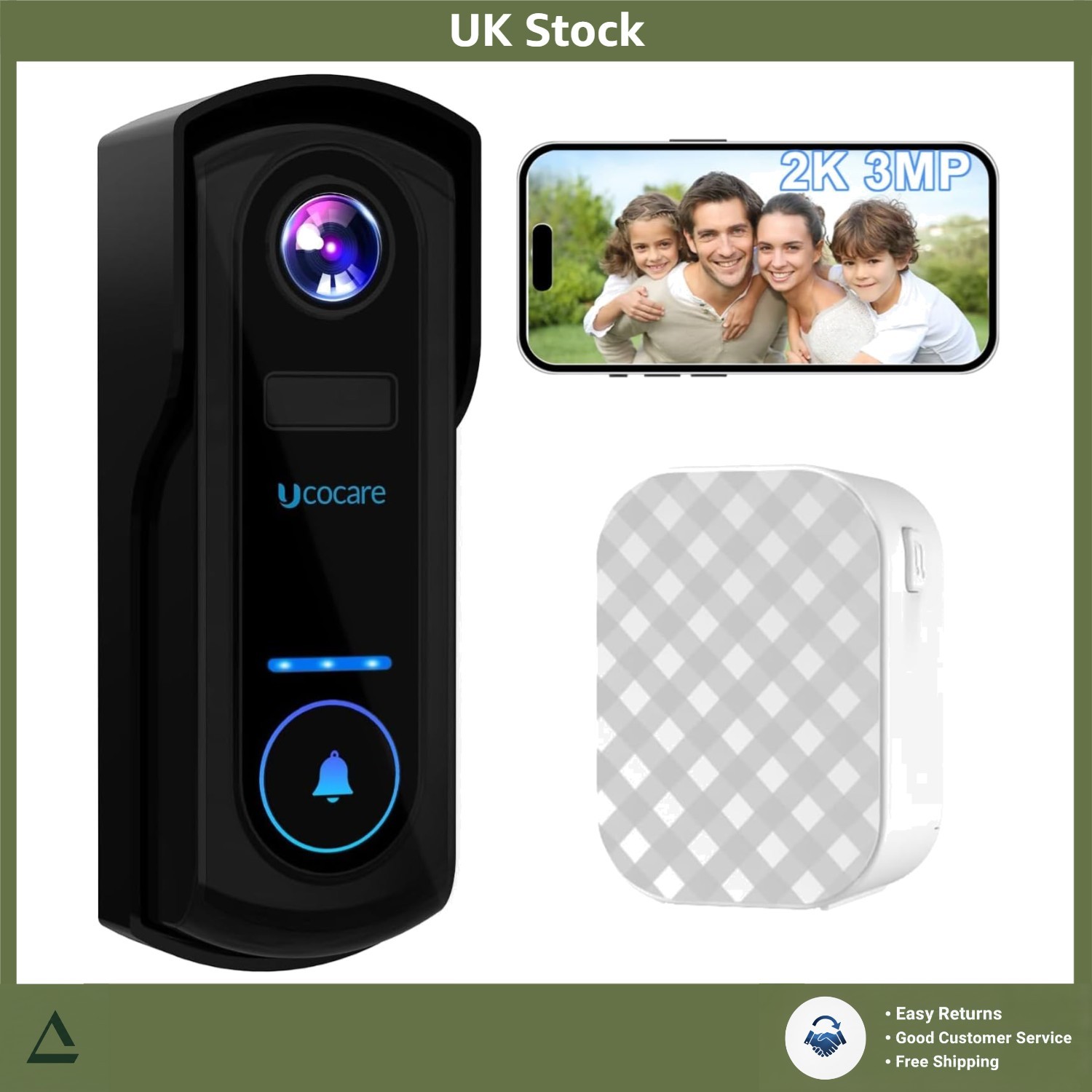 UCOCARE Video Doorbell Wireless with Chime, 2K 3MP WiFi Doorbell Camera Wireles
