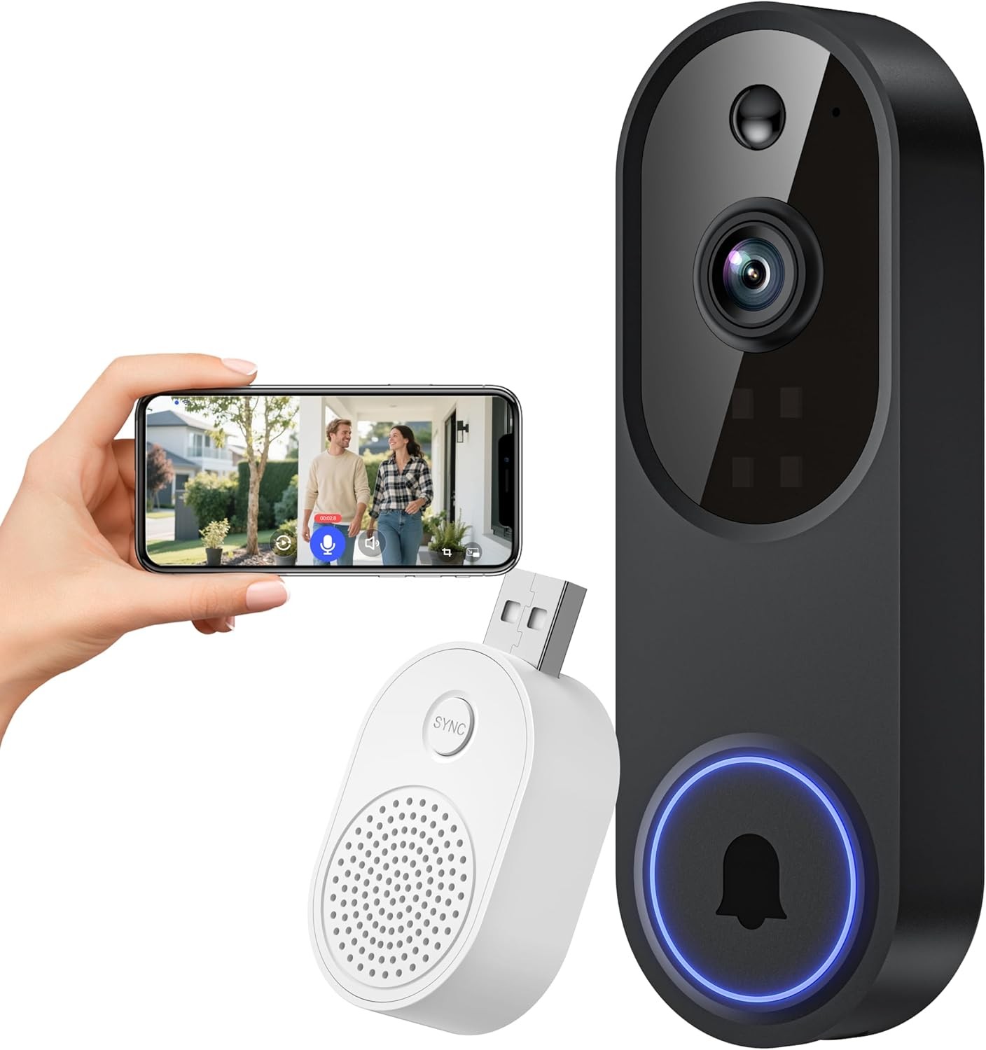 Wireless WiFi Video Doorbell Camera with Doorbell, 1080P HD Smart Video Doorbell with Camera