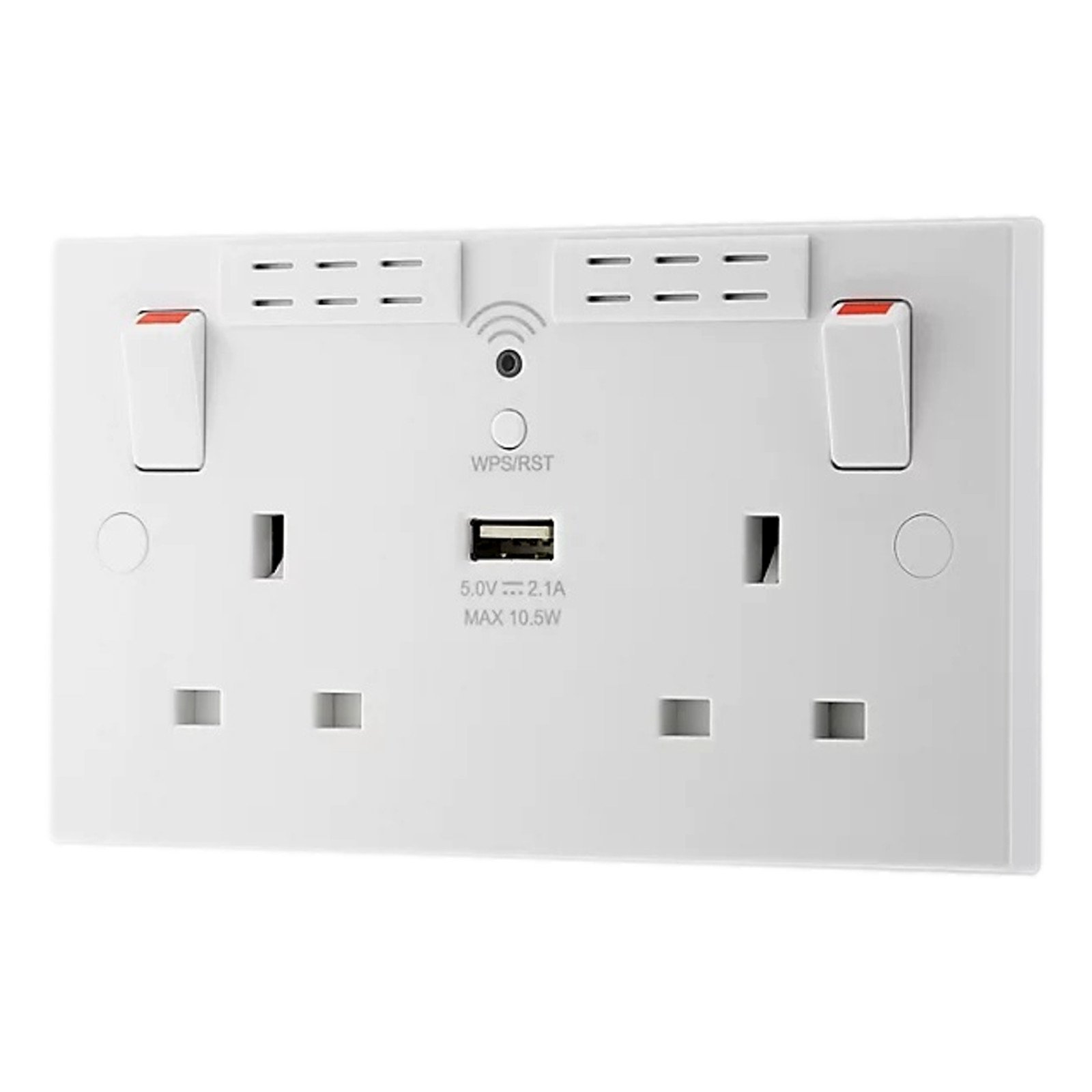 BG 13A Twin Switched Wi-Fi Range Extender Socket with 1 x USB - White