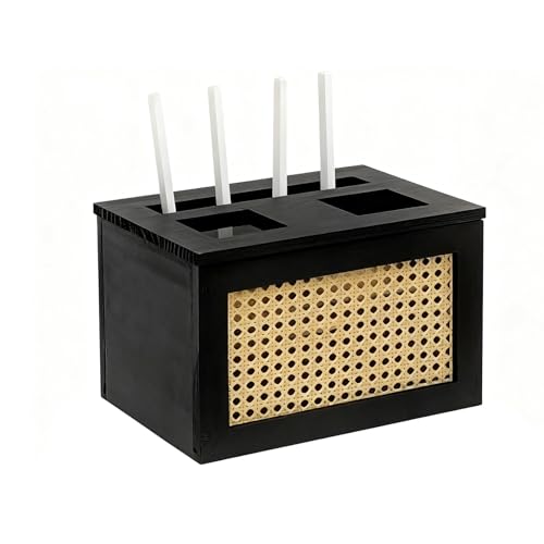 Rattan WiFi Router Storage Box, WiFi Router Modem, WiFi Wireless Router Storage Box, Power Strip and Cable Management Holder Rack Creative Desktop Organizer Shelves(Black)