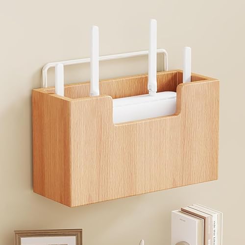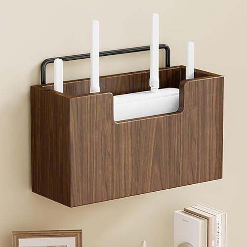 OAKVYNE WiFi Router Storage Box, Router Shelf, Wall Mounted Router Storage Box, WiFi Router Modem, Cable Power Plug Wire Storage Boxes, WiFi Router Box For Storage.(Brown+Kouqing)