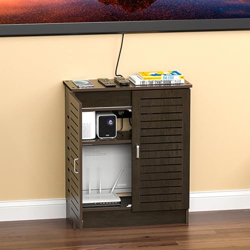 OAKVYNE WiFi Router Modem Storage Box, Router Storage Cabinet, Floor Standing Modem And Power Strip Organizer, Cable Management, WiFi Router Storage Box, For Office And Home(Brown,60 * 80 * 25cm)