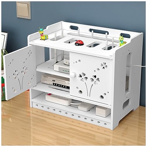 DONGGANSHI Storage Box Router WiFi Router Modem, Cable Power Plug Wire ES, Floating Shelf, Multi-Function Storage Rack with Door (White 30X20X32Cm)
