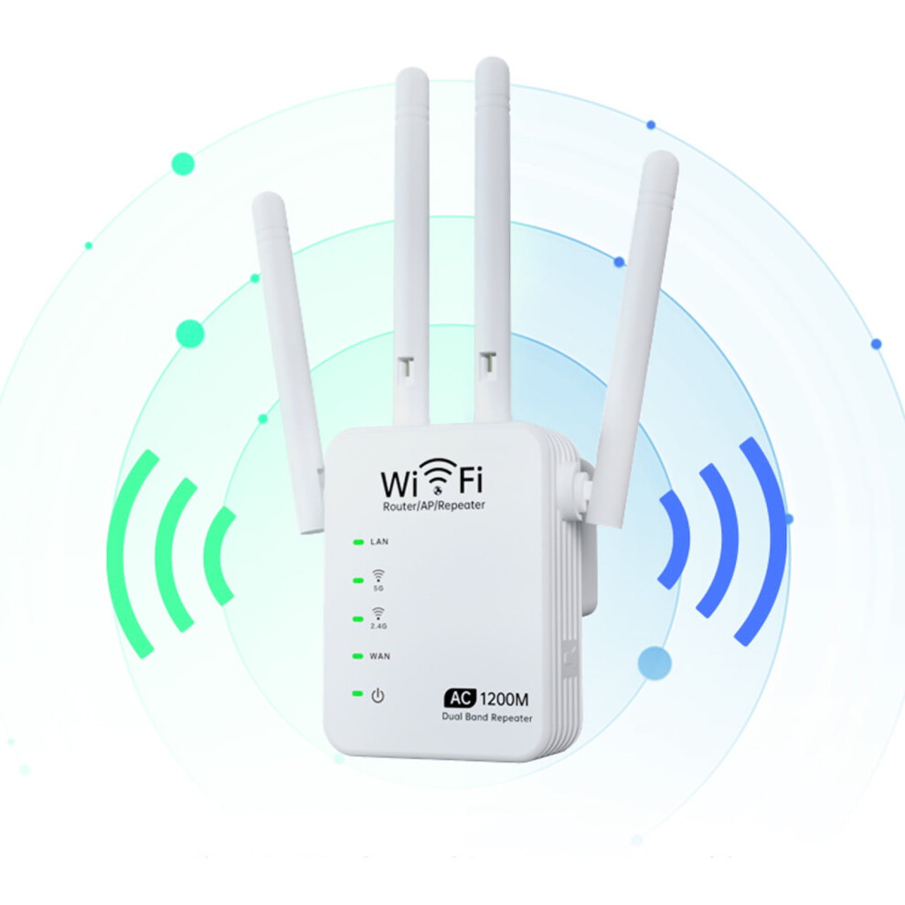 1200Mbps Wifi Repeater Dual Band 2.4G 5G Network Expander Range Extender Signal Booster Amplifier 4 Antenna Wireless WiFi Router Extensive Coverage