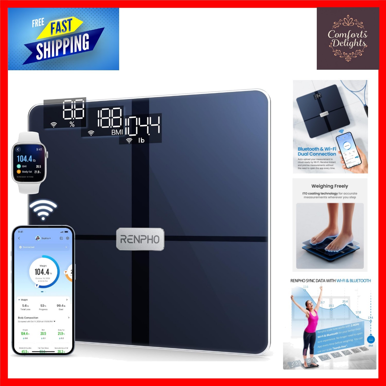 Scales for Body Weight, Digital Bathroom Scales with Wi-Fi Fitness Tracking, ...