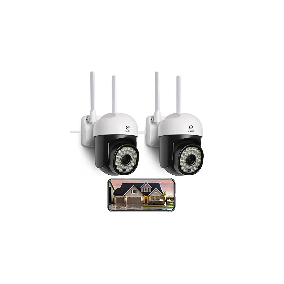 Security Camera Outdoor 2 Pack, 2.4G/5G WiFi 360 PTZ Security Cameras Outdoor for Home Security,Night Vision, Human PIR Detection, 2 Way Audio,IP65,