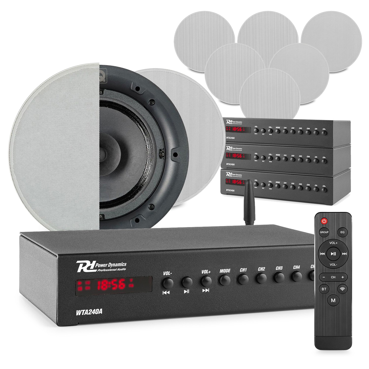 Multi Room Ceiling Speaker System with Wi-Fi App Controlled Amplifier, 3-Rooms