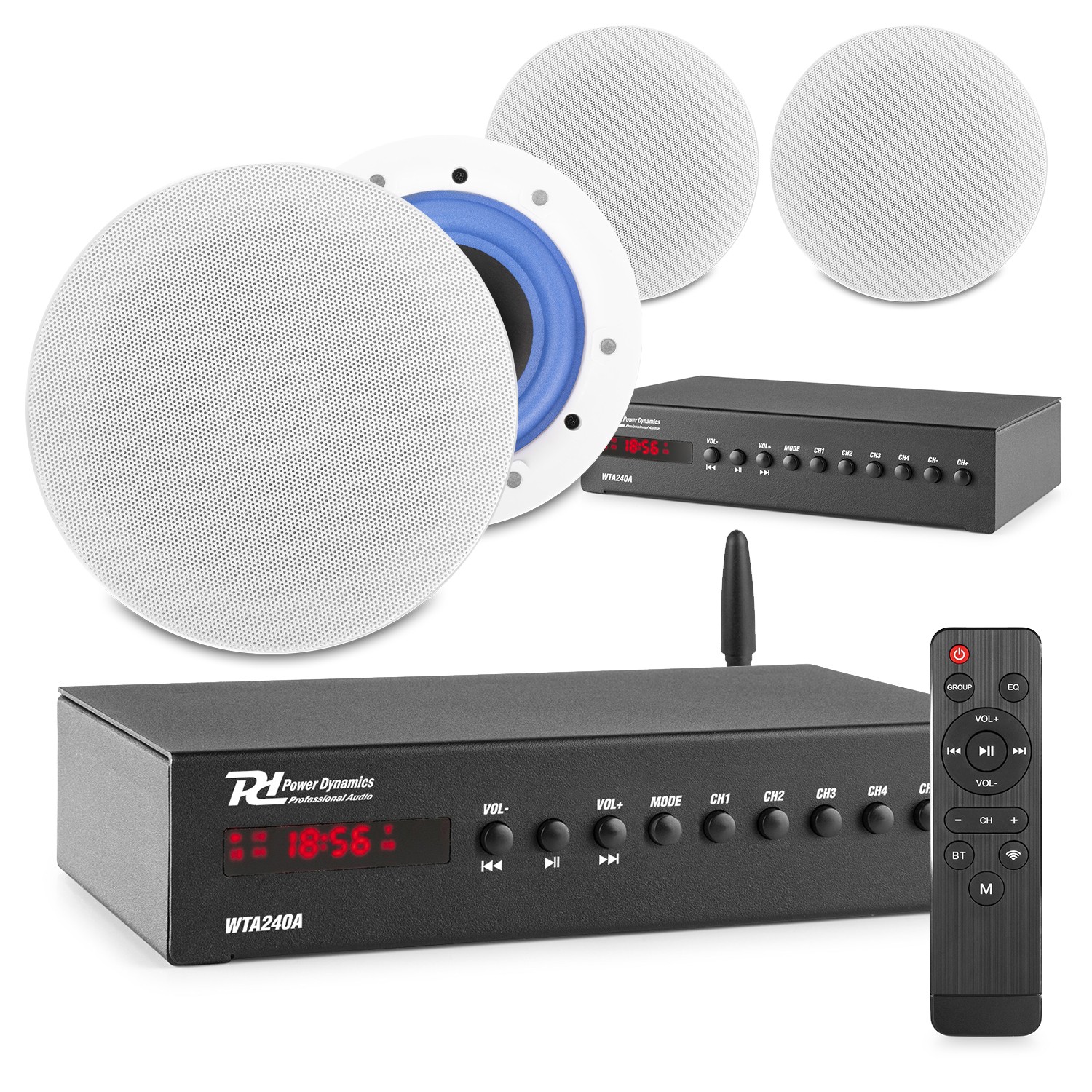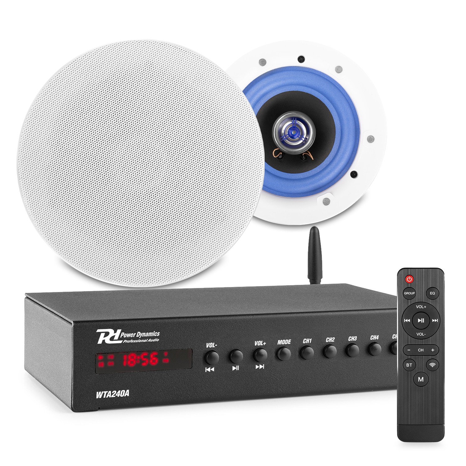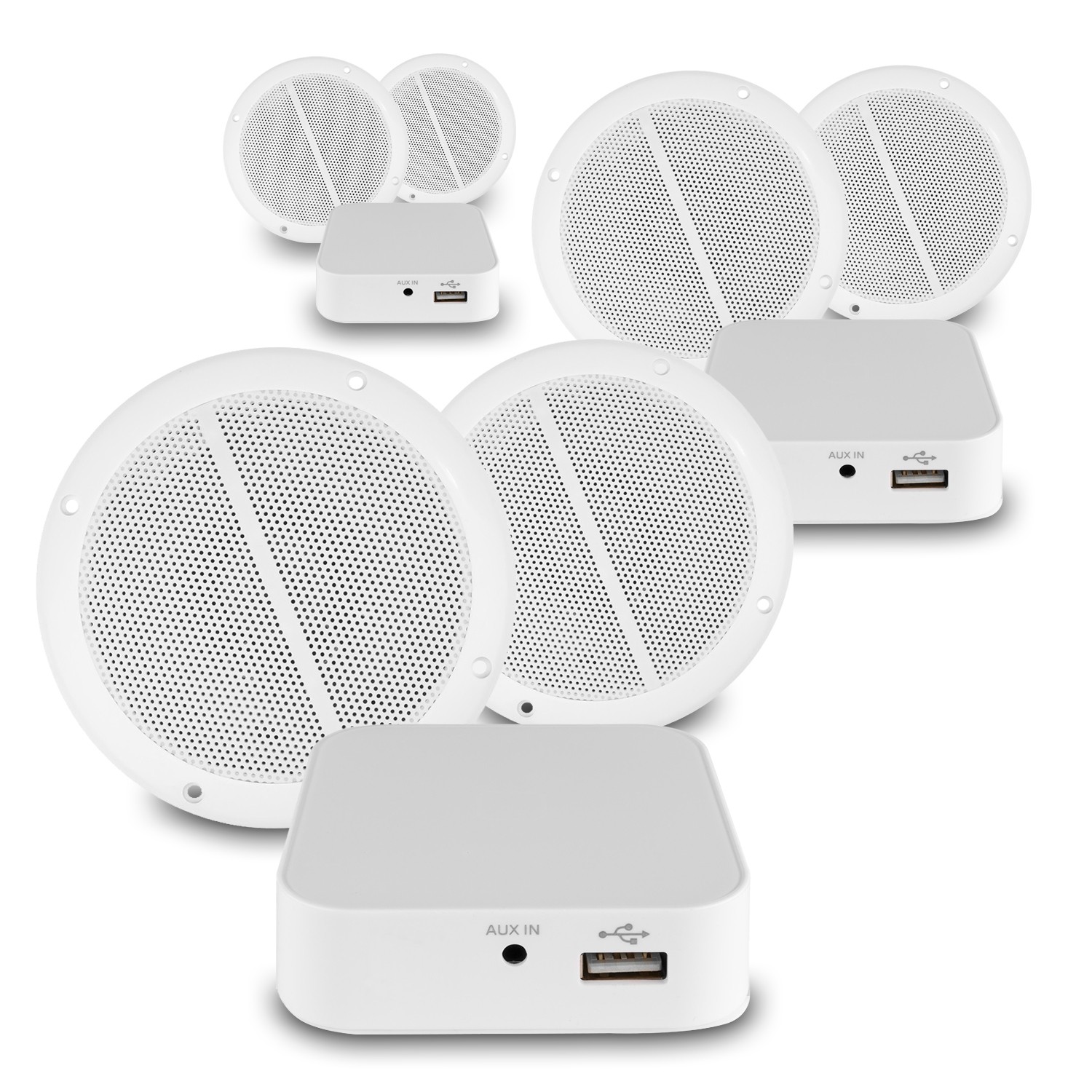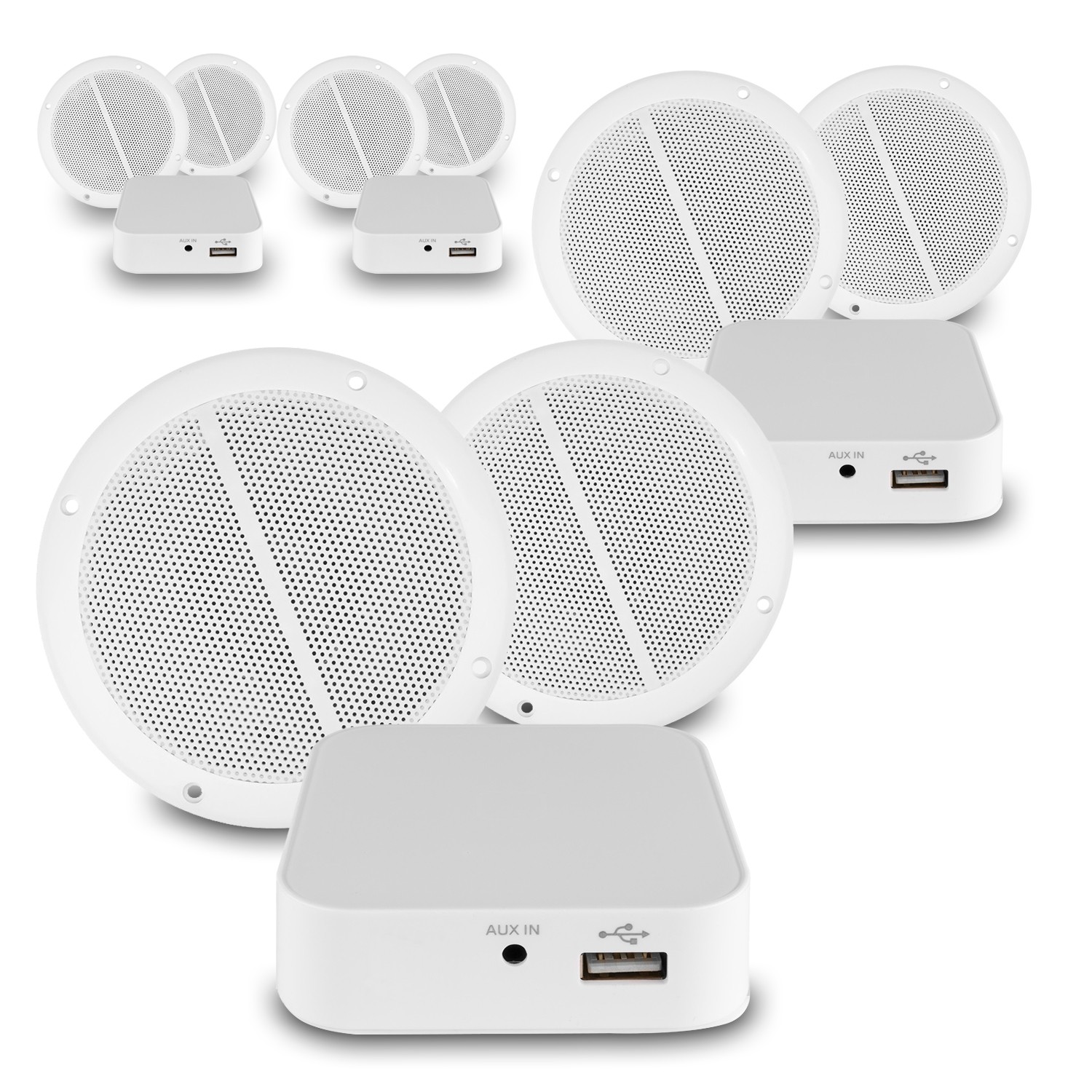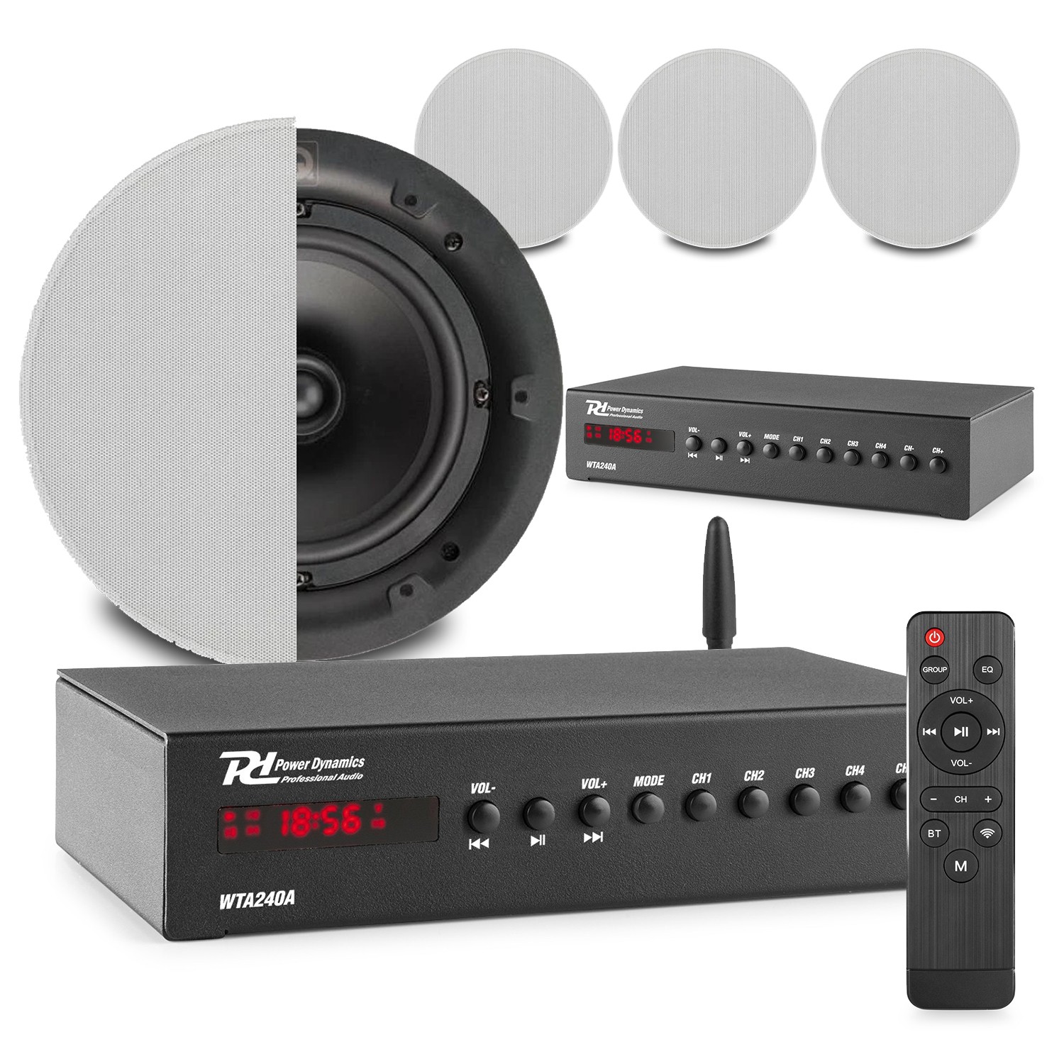 Multi Room Ceiling Speaker System with Wi-Fi App Controlled Amplifier, 4-Rooms