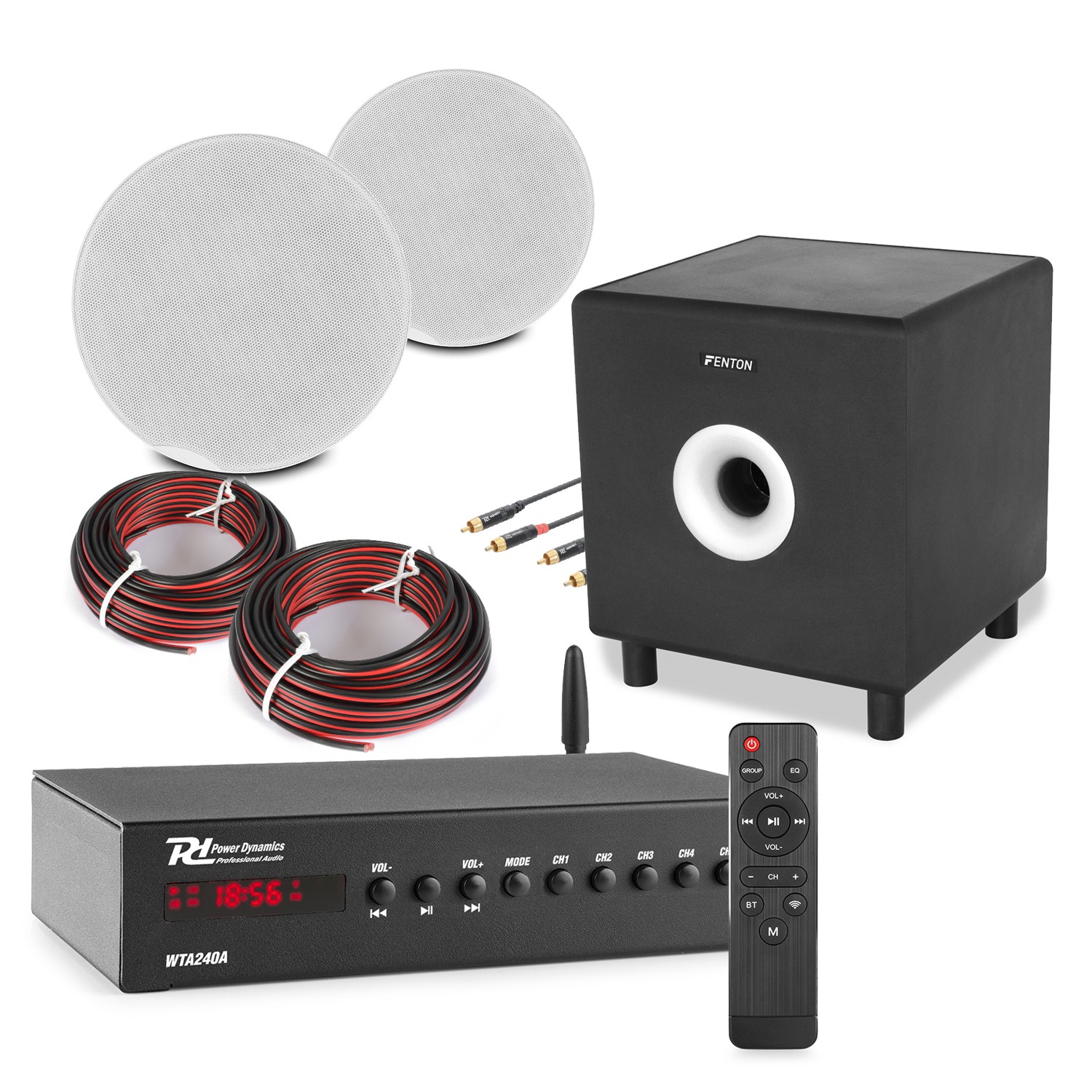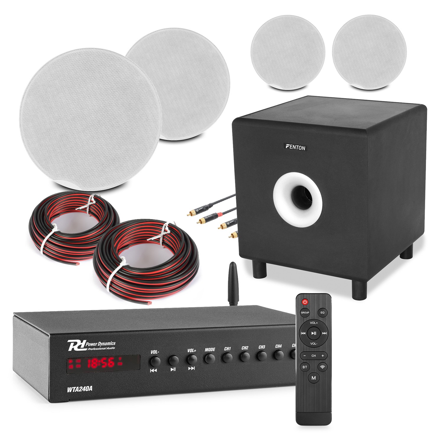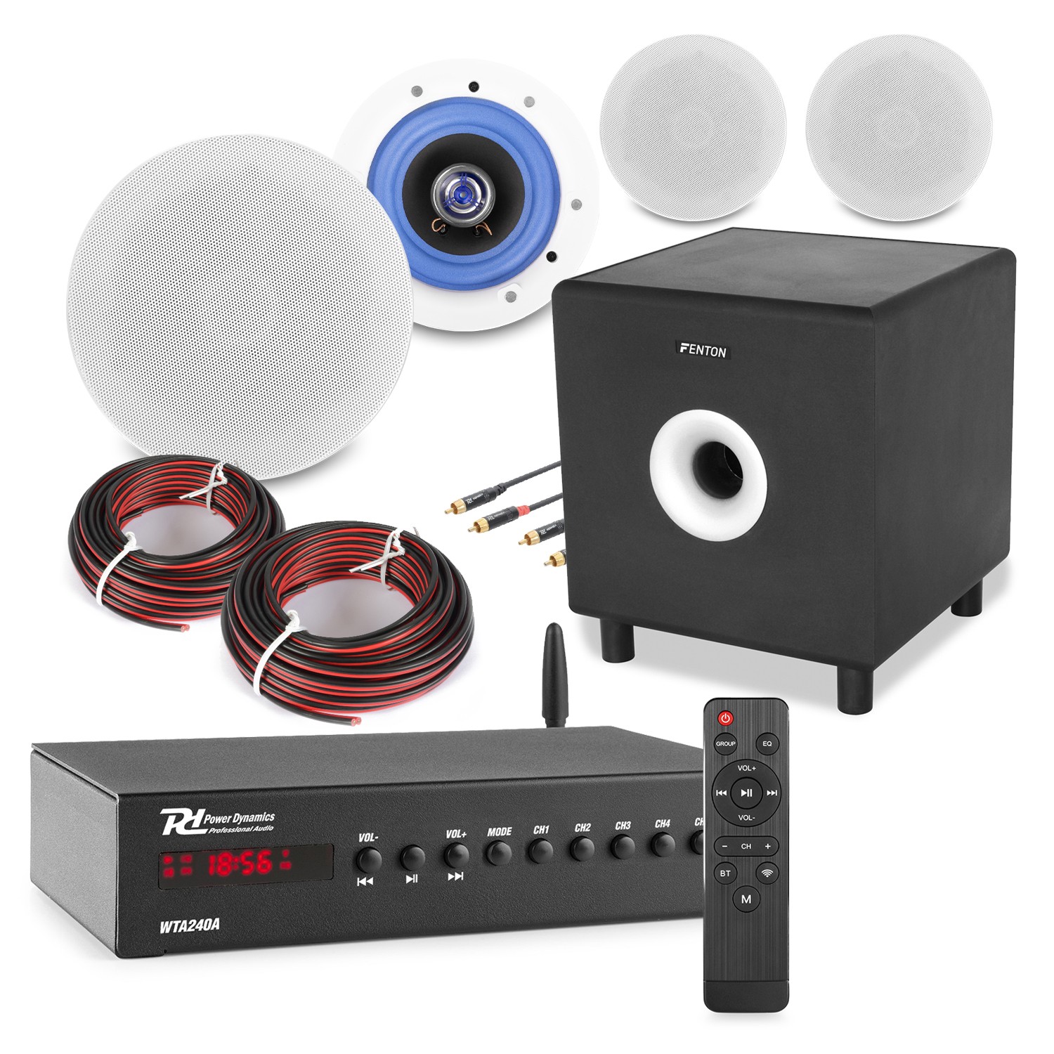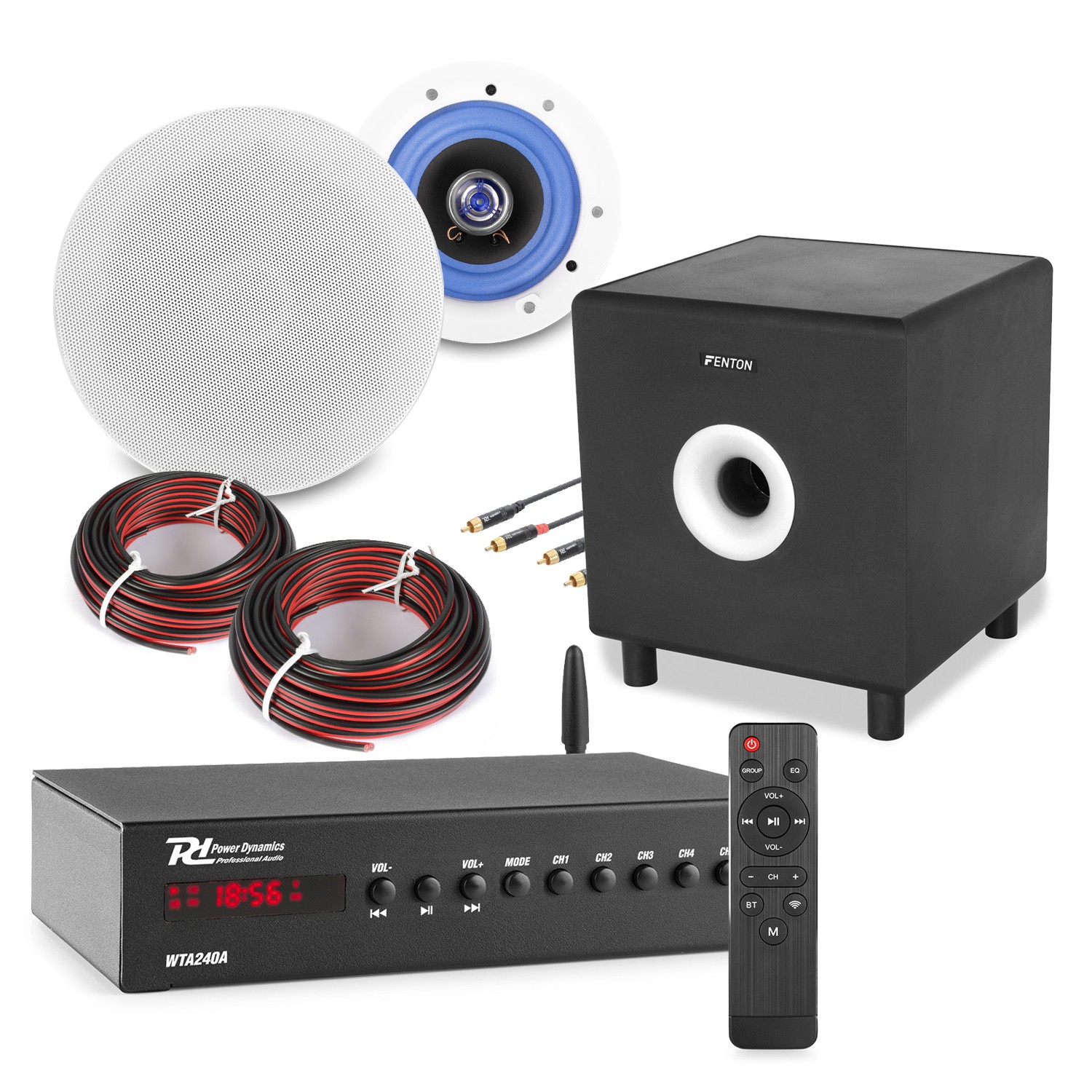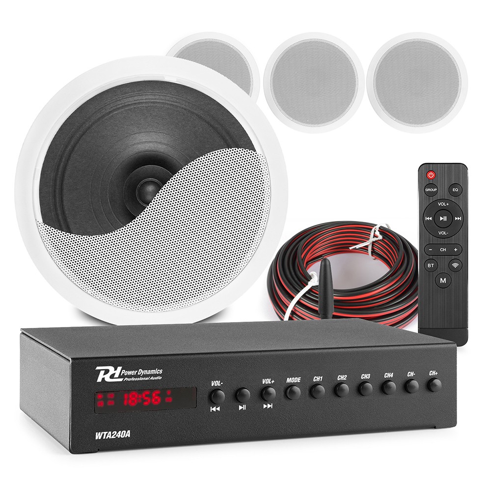 Multi Room Ceiling Speaker System with Wi-Fi App Controlled Amplifier, 4-Rooms