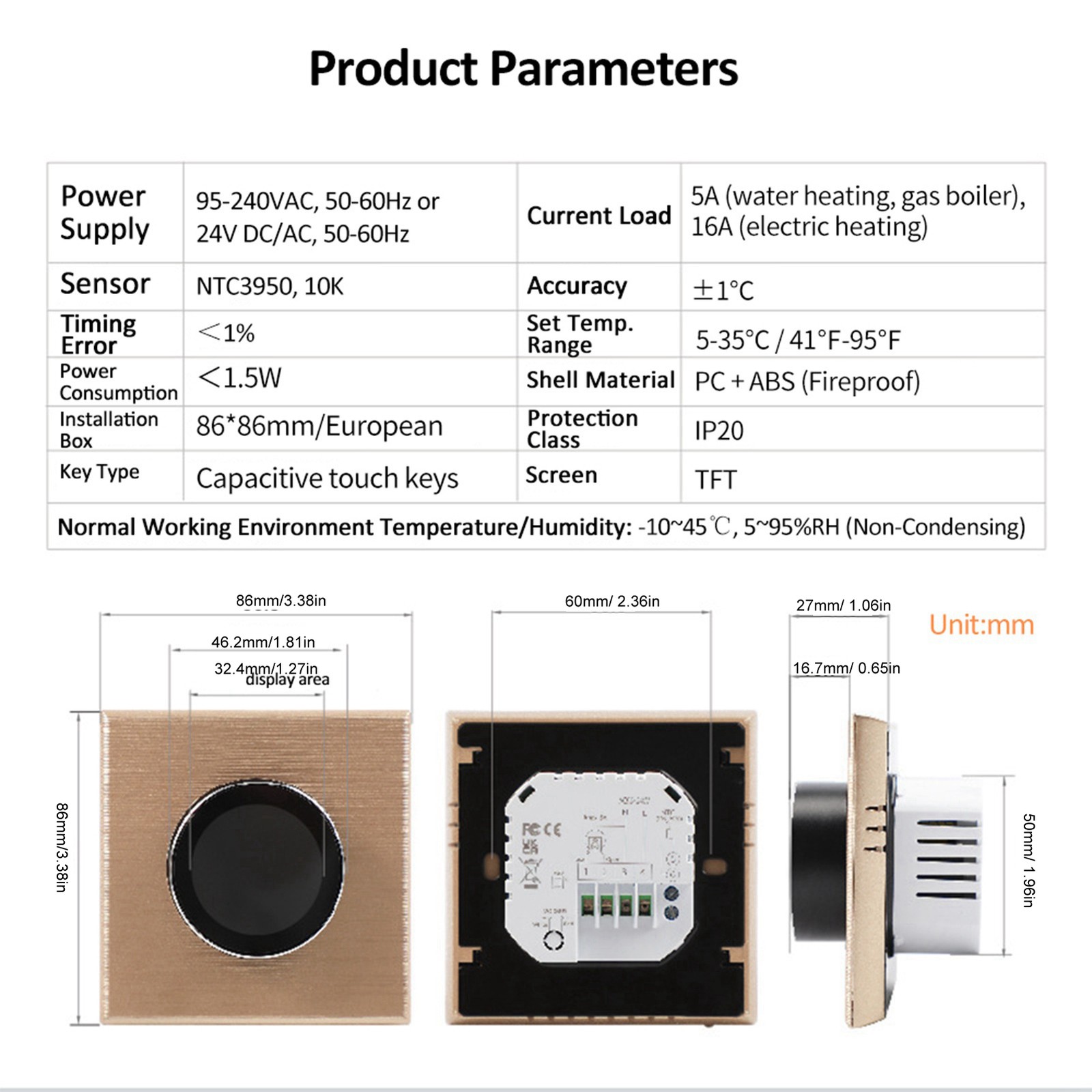 °Touchscreen Color Display Thermostat WiFi Smart Thermostat IP20 Protecting