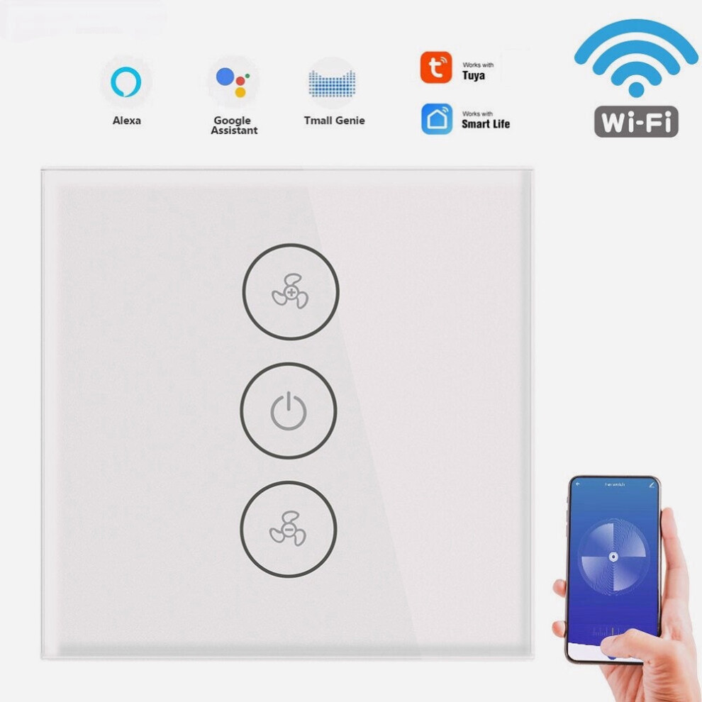 (US Plug) Touch WiFi Ceiling Fan Switch EU/US Remote Timer Speed Wall Glass APP Control Work with Alexa Google Home